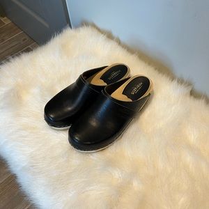 Classic black leather clogs. Comfortable and stylish. Perfect for everyday wear. These were sadly too small for me so they’re still in the pictured condition. Moving sale so must sell by August 1. Make me an offer