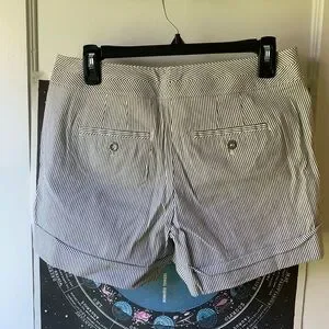 Chic pinstriped shorts with a tailored fit. Features a classic black and white pattern. Ideal for versatile styling.