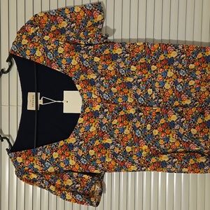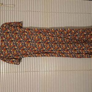 Sezane Victoria Midi Length Square Neckline Floral Print Dress