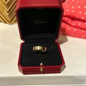 Luxurious Cartier band in gold. Features stunning diamond accents. Ideal for elegance.