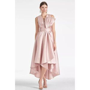 Sachin & Babbi Jenna Gown Silver Peony Pink Satin Asymmetrical NWT Size 6