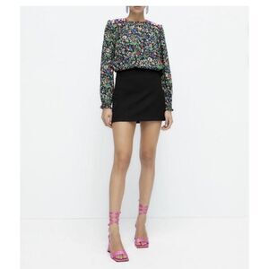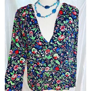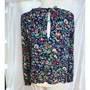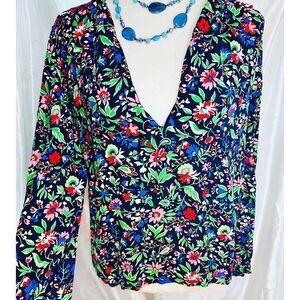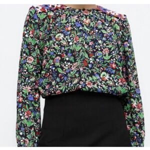 ZARA SZ M Patchwork Floral Flowy :Light Long Sleeve Blouse TOP Boho Coquette