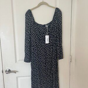 Reformation Navy Polka Dot Long Sleeve Dress