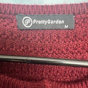 Pretty Garden Burgundy Textured Knit Cardigan - Gold Button Front - Size M