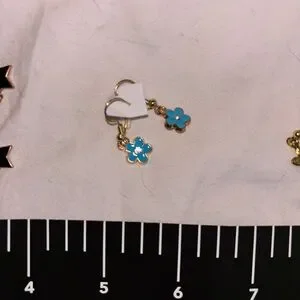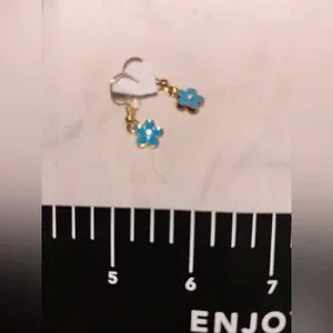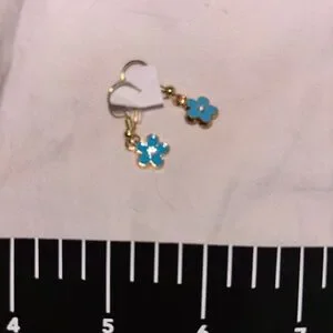 Charming gold earrings with blue flower accents. Perfect for adding a touch of elegance.