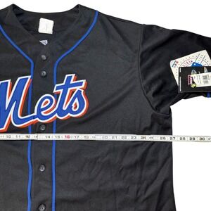 Celebrate a Mets legend with this vintage Mike Piazza #31 black jersey by Majestic. This authentic MLB Genuine Merchandise jersey is a size XXL and made in Korea—true old-school quality. Features bold sewn-on graphics, vibrant royal blue and orange trim, and original retail tags still attached. A must-have for collectors or die-hard fans of one of the greatest catchers in baseball history.