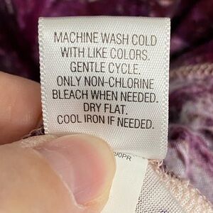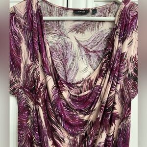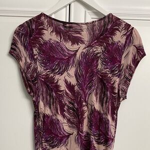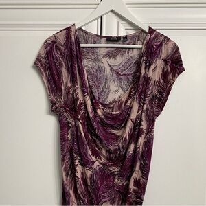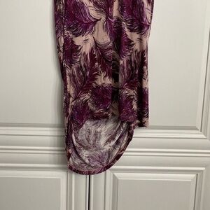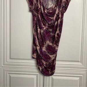 Women’s size large short sleeve ruched and gathered pink and purple knit dress