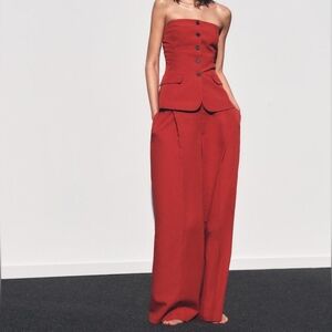 Zara Set Double-Breasted Strapless Top size XXL + Double Pleat Pants size L Zw Collection Red BNWT. SOLD AS A SET. NO SEPARATION ALLOWED. NO LOW BALLING!
