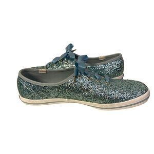 KEDS x KATE SPADE NEW YORK CHAMPION GLITTER SNEAKERS BLUE RIBBONED LACES WF61658