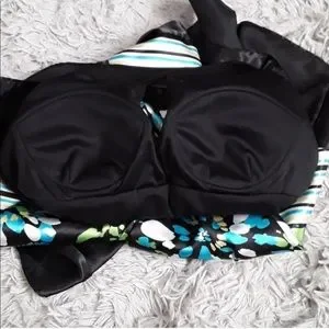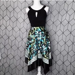 Turquoise, green, white and black- flowy Handkerchief Hem