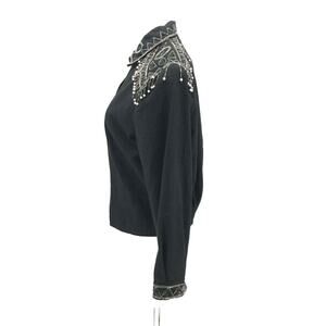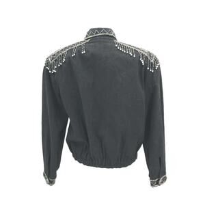 Vintage Modi Denim Women's Western Beaded Shirt Jacket Shacket Sz L 10-12 Black