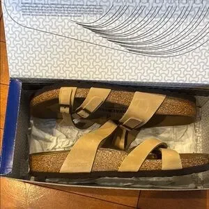 Classic Birkenstock sandals with double straps. Comfortable and stylish for everyday wear.