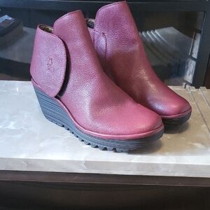 Fly London Red Ankle Booties with Rugged Sole
