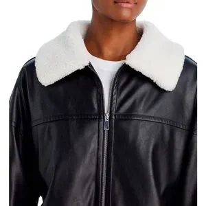 4TH & RECKLESS Vegan Leather Black Bomber Jacket with Faux Fur trim XS