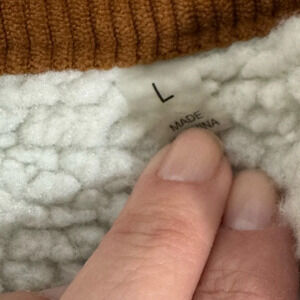 Jacket is very stylish. Brown corduroy fabric, w loose fitted design. Perfect for winter, fall. Button closure, long sleeves, and a short length, this jacket is made of › a cotton blend outer shell material and a polyester lining material.