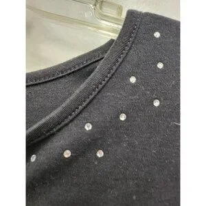Quaker Factory Womens Wearable Art Top XL Black Floral Embroidery 3/4 Sleeve