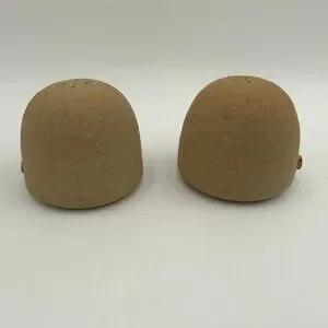 These 1981 signed Marion Schlauch salt and pepper shakers are a unique and whimsical addition to any kitchen decor. Made from clay and stoneware, these round shakers feature a brown color and a charming design of men with mustaches. Handmade in America, these shakers are a vintage original piece from the 1980s, adding a touch of art pottery style to your dining table. The set of two shakers stands at 3 1/4" in height with a diameter of 3 3/4", making them a functional and decorative item for your home.