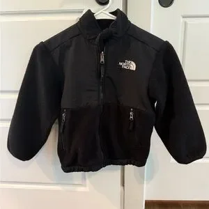 Sleek black jacket by The North Face. Features a full zip and iconic logo. Great warm comfortable kids jacket. Great condition.