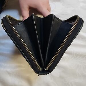Elegant woven design. Luxurious leather texture. Secure zip closure.