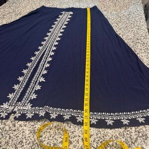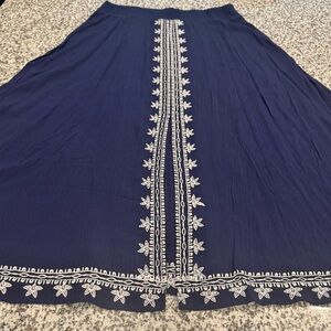 Soft Surroundings Deep Blue A-Line Skirt with White Embroidery
