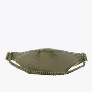 EXTERIOR: 1 large zipper closure with 2 paracord zipper pulls, webbing strap with large plastic buckle (Max length 34". waist size 22.5"- 53"). 2 small D rings, 1 zipper pocket on the back, and 1 removable braided paracord strap.