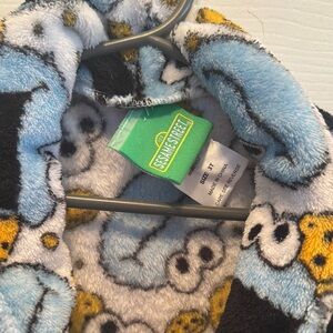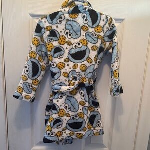 Cozy kids' robe featuring Cookie Monster and cookie patterns. Perfect for lounging.