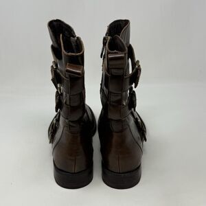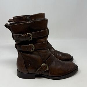Born Mayne Boots Womens 7 M Brown Leather Distressed Side Zipper Buckles Biker