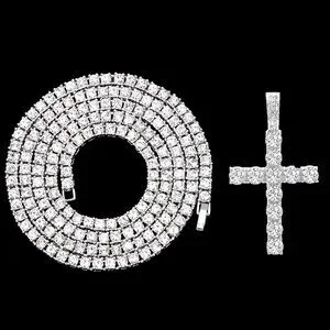 ⭐ Beautiful 2Pc 24" Diamond Necklace & Cross Pendant With 4mm Diamonds 18k ⭐