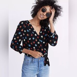 Madewell floral wrap shirt XXS black multi colorful cropped top party classic