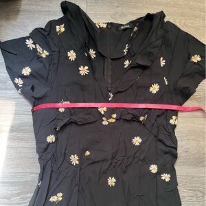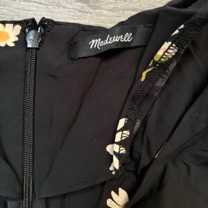 Madewell maxi dress. Black with white daisy print. Short flutter sleeves. Ruffled v neck and collar. Tiered skirt. Size tag missing but fits like a M/L. Previously owned.