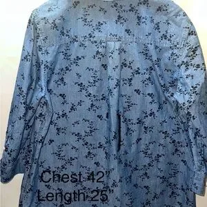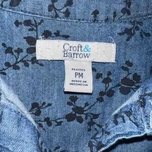 Croft & Barrow Blue Casual Button Down Shirt velvet Floral collegiate academia