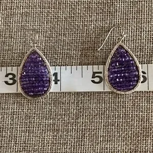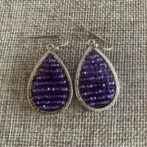 These stunning Silpada earrings feature a teardrop design with amethyst-colored crystals intricately woven within a silver-toned frame. The dangle style allows the purple beads to catch the light beautifully, adding a subtle sparkle to any ensemble.