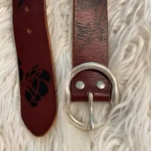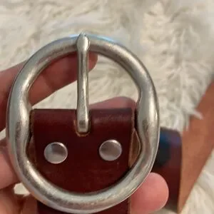 Enhance your wardrobe with the Lucky Brand leather belt, showcasing a rich brown hue complemented by silver-toned hardware. Crafted with a distressed finish, this belt exudes a vintage charm while ensuring durability and style. Perfect for adding a touch of sophistication to any outfit, this accessory is a must-have for those who appreciate quality and design.