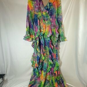 show me your mumu Jenny Ruffle Maxi Dress Small Vibrant colorful chiffon