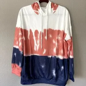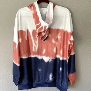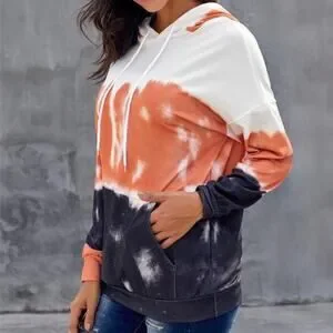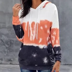 Colorblock Tie Dye Long Sleeve Womens Pullover Hoodie Sweater Pocket Medium