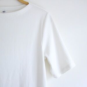 Uniqlo White Ribbed Half Sleeve Tee Shirt
