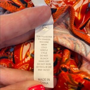 Dive into style with this vibrant women’s TC size 12-18 soft buttery leggings. Featuring a mix of red, orange, and black patterns, this collection is fun and colorful. Enjoy the comfort and fashion-forward design.