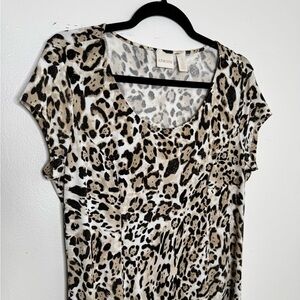 Chicos women's 8 leopard print stretchy fabric maxi short sleeves dress costal