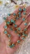 Unique little costume piece that hails form the Y2K era. Circles of gold tone hold small turquoise acrylic beads in their centers. Lays beautifully.