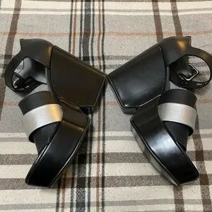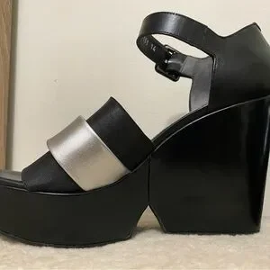Robert Clergerie Black and Silver Wedge Sandals