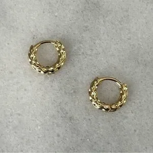 Gold Textured Huggie Hoop Boho Earrings Brand New Gold Plated Sterling Silver S925 Stamped