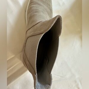 These Vince Women's Nira sneakers offer a stylish and minimalist design, perfect for casual outings or everyday wear. Crafted from premium cobblestone-colored suede, these slip-on sneakers feature elastic side panels for easy wear and a lightweight rubber sole for all-day comfort. The versatile neutral tone complements any wardrobe.