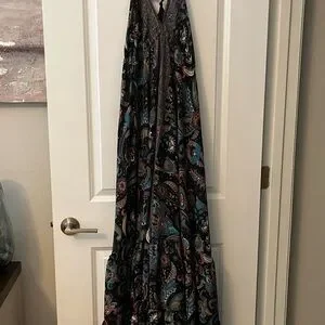 🌸🦋💫Elegant Paisley Halter Maxi Dress in Black and Pink and Teal💫🌼🌻