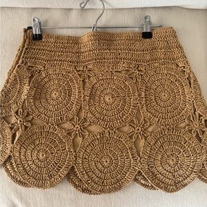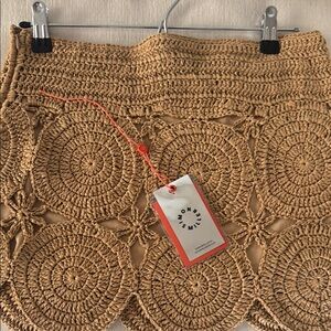 Simon Miller Beep Beep Crochet Mini Skirt in natural. This skirt features intricate crochet detailing, perfect for a chic and elevated look. Worn once, in perfect condition. Still have original tags.
