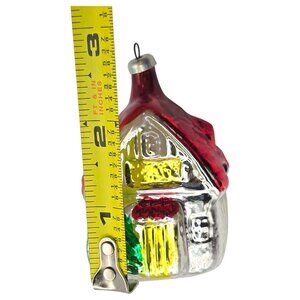 Vtg Glass Cottage House Christmas Tree Ornament West Germany 1950s Holiday Decor