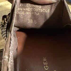 Chic slip-on shoes by Kurt Geiger. Features a tweed design with a striking gold chain detail. Ideal for everyday wear.