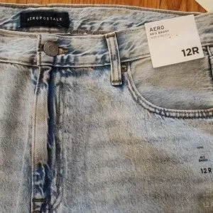 NWT Aeropostale 90's baggy jeans in size 12 regular. Light wash. Non stretch. 79% cotton, 21% recycled cotton material. 31in inseam.