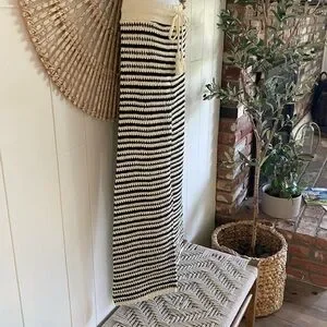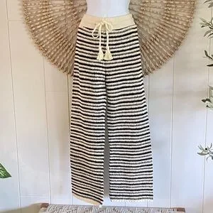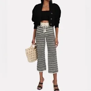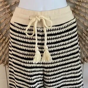 Cropped Crochet Drawstring Cotton Knit Off White & Black Pants