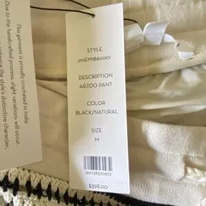 VERONICA BEARD Arzoo Cropped Crochet Cotton Knit Off White & Black Pants Medium