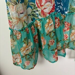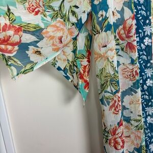Vibrant floral kimono cardigan. Features a mix of colors. Lightweight and flowy. Perfect for layering.